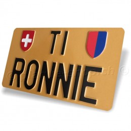 Schweizer Kontrollschild hinten Hochformat (160x300mm) mit Wappen, Weiss reflektierender Hintergrund mit schwarze oder Farbschrift. Buchstabenhöhe: 55/70mm Wappenhöhe: 55 mmText obere Zeile: Max. 2 Zeichen 55 mm höheText untere Zeile: Max. 6 Zeichen 70 mm höheAbmessung: 160 x 300 mm Schildfarbe: WeissSchriftfarbe: Schwarz, Gelb, Blau, Grün, Rot, Gold...