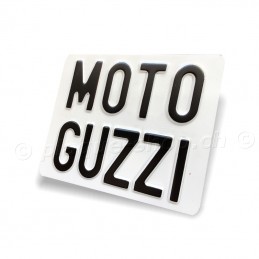 Targa moto 140x180mm, sfondo bianco riflettente, scritte a colori con gli stemmi.